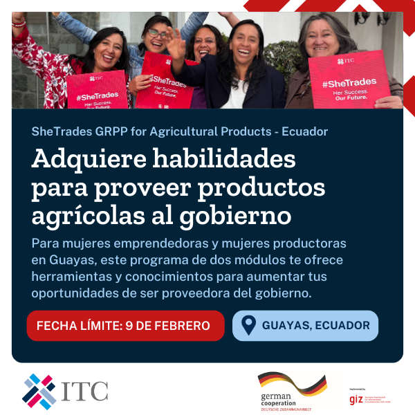 Esta oportunidad es ofrecida por el proyecto #SheTrades financiado por Alemania.