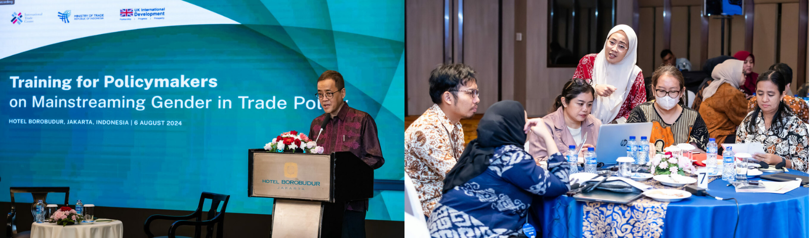 The one-day event on 6 August brought policymakers and other trade experts together at the Hotel Borobudur in Jakarta to discuss practical ways to move towards a more gender-inclusive trade landscape in the country, through the activities of their trade and small business ministries and trade support institutions. They learned to use trade agreements to tackle gender equality issues, make public procurement systems more inclusive, collect data and engage with government and women stakeholders, and craft an action plan and a monitoring and evaluation framework.